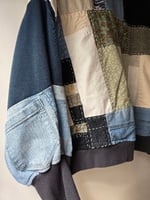 One of a kind jumper using denim linen and cotton fabrics with handstitched detailing.